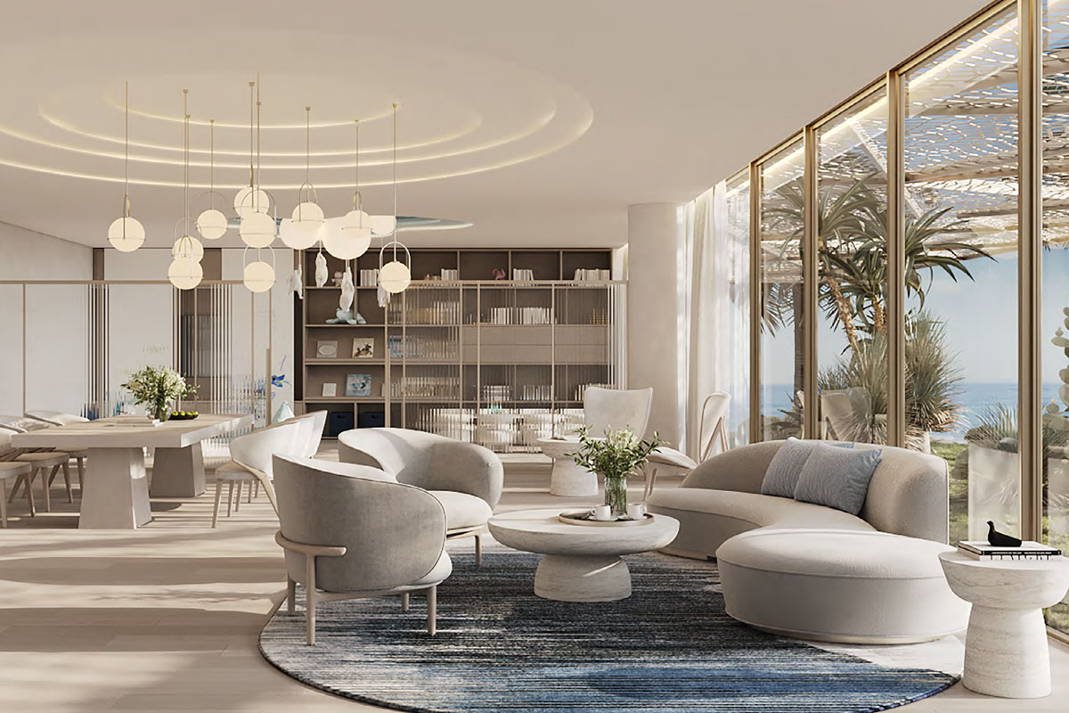 With expansive layouts ranging from 1,800 to 2,200 sq. ft., each apartment features open-plan living areas, panoramic sea-facing balconies, and interiors crafted with premium materials. Floor-to-ceiling glass walls invite abundant natural light, creating a seamless connection between indoor serenity and the stunning blue horizon of the Arabian Gulf.