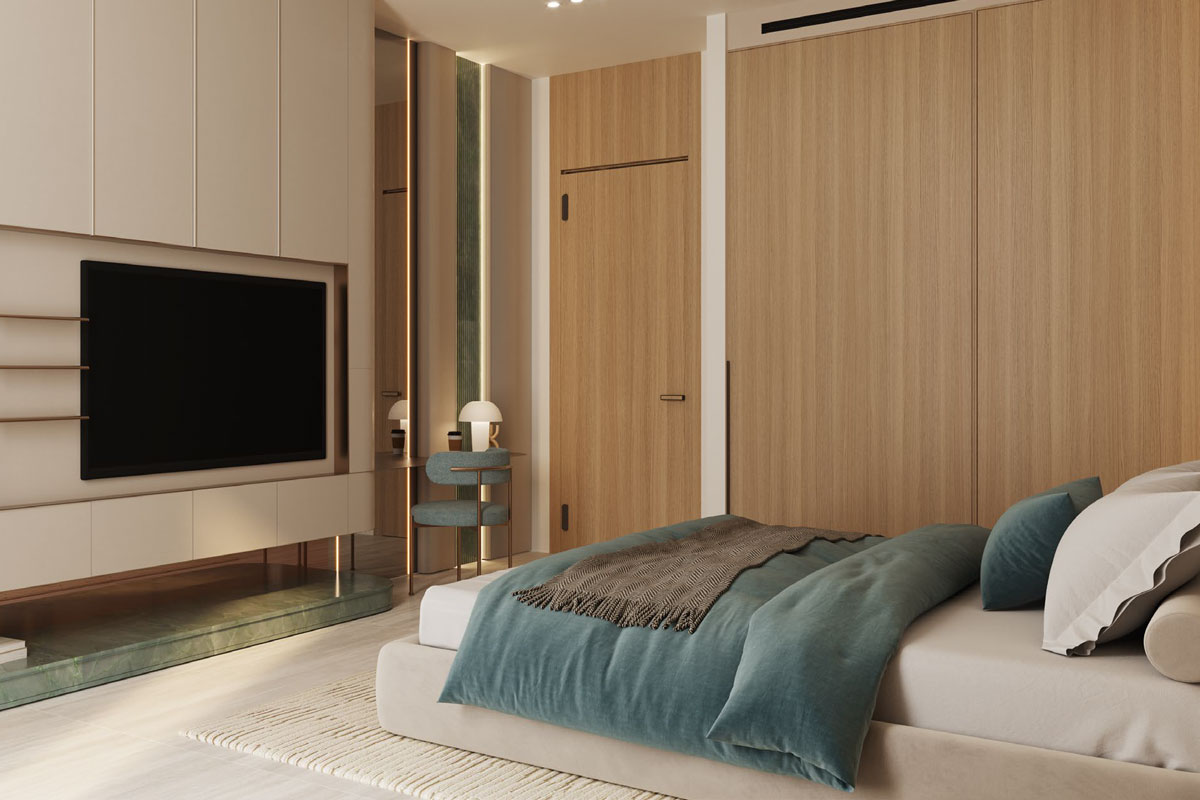 Each 1-bedroom apartment features a thoughtfully designed open-plan layout that connects the living, dining, and kitchen spaces. The master bedroom offers privacy and comfort, complemented by an elegant bathroom and a private balcony that frames stunning views of the community and city skyline. Premium finishes, modern fittings, and smart home features ensure that every inch of space is optimized for a luxurious lifestyle.