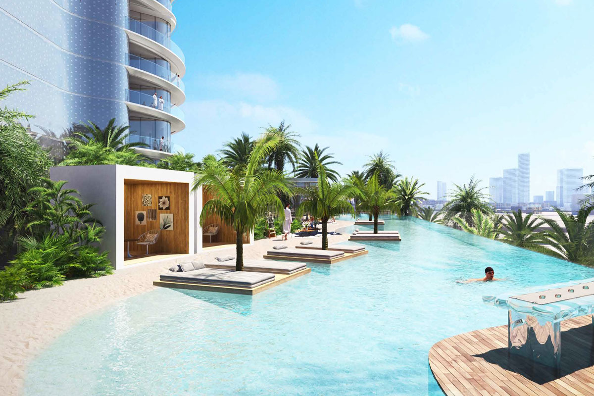 The development offers 1–3 bedroom luxury apartments and 3–5 bedroom super luxury suites, including private elevators and oasis-inspired pools for select units.