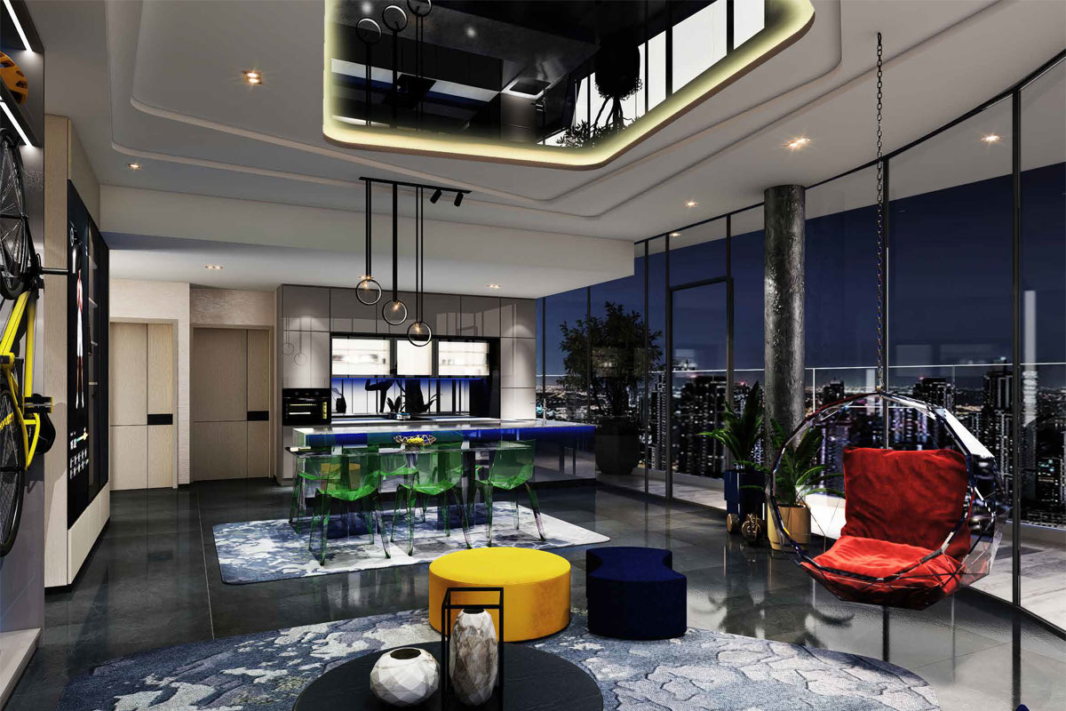 Spanning approximately 950–1,200 sq.ft., the Type A1 apartment maximizes space through a smart open-plan layout. Expansive floor-to-ceiling windows illuminate the interiors while offering panoramic views of the city skyline. Every detail, from premium finishes to integrated smart home features, ensures a living experience defined by comfort, luxury, and convenience.